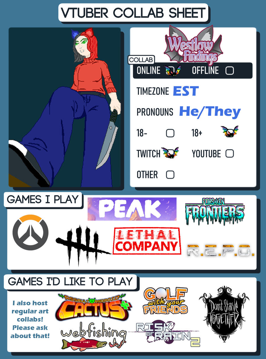 Either purchase on Kofi or contact me via discord @westlowfindings or my email [email protected] for commissions. I do not take comms through any other method.